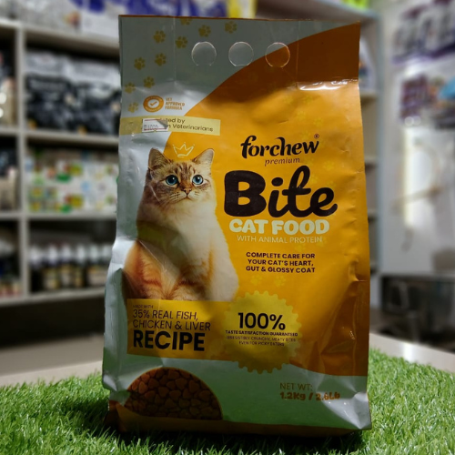 Forchew Bite Cat Food is a premium, high-protein dry food specially formulated to provide complete and balanced nutrition for cats of all breeds and life stages. Made with real chicken, fish, and liver, this formula provides essential protein, vitamins, and minerals to support healthy growth, strong muscles, and daily energy.